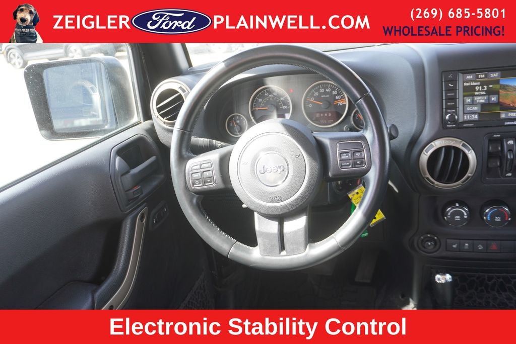 Adorned in a sleek Black exterior, this Wrangler Unlimited Sahara 75th Anniversary Edition is a true head-turner. Equipped with a 3.6L V6 24V VVT engine and a 5-speed automatic transmission, it delivers the power and capability you demand, with the added convenience of 4-wheel drive. Impressive fuel efficiency ratings of 16 city/20 highway MPG* further enhance the appeal of this remarkable vehicle.