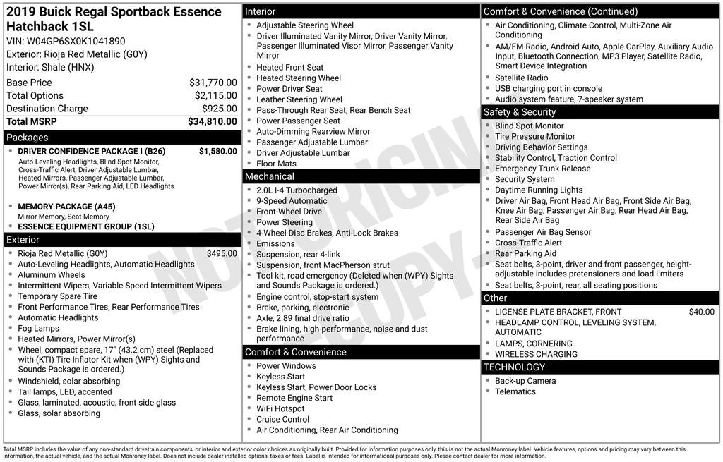 Discover the exceptional 2019 Buick Regal Essence, a sedan that seamlessly blends style, performance, and cutting-edge technology. This stunning vehicle, finished in a vibrant Red exterior, is a testament to Buick's commitment to crafting automobiles that exceed expectations.