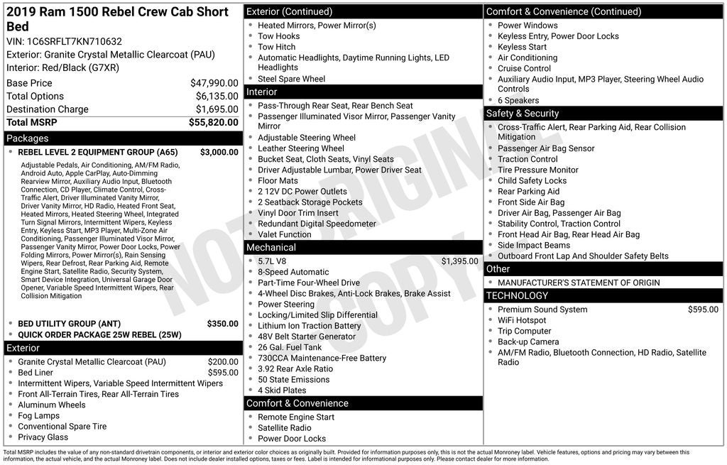 Whether you're tackling rugged terrain or navigating the daily commute, this 2019 Ram 1500 Rebel is the perfect blend of power, capability, and sophistication. Experience the difference for yourself – schedule a test drive today and discover why this truck is the ultimate choice for those who demand more from their vehicle.