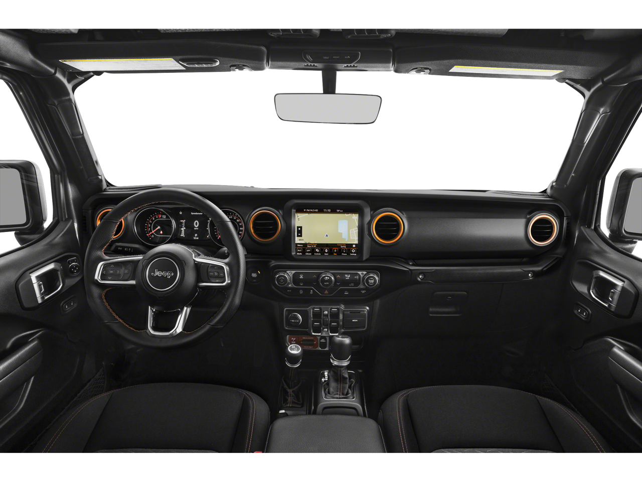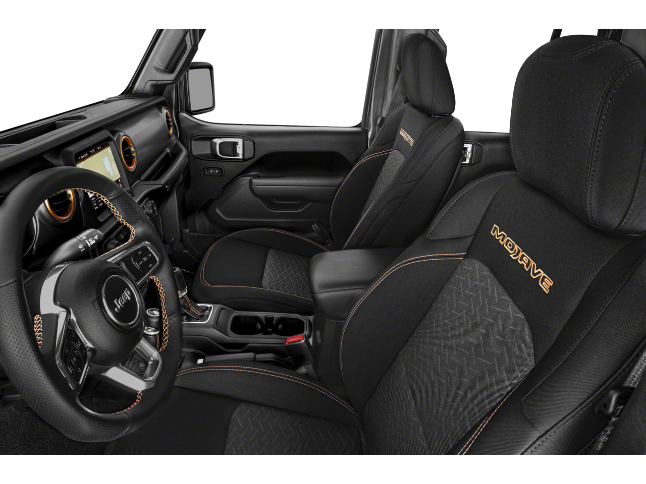 Inside, the Gladiator Mojave pampers you with premium leather-trimmed bucket seats, a full-length floor console, and a leather-wrapped steering wheel. Stay connected with the Uconnect 4C Nav system, featuring an 8.4-inch display, Apple CarPlay, and Android Auto integration.