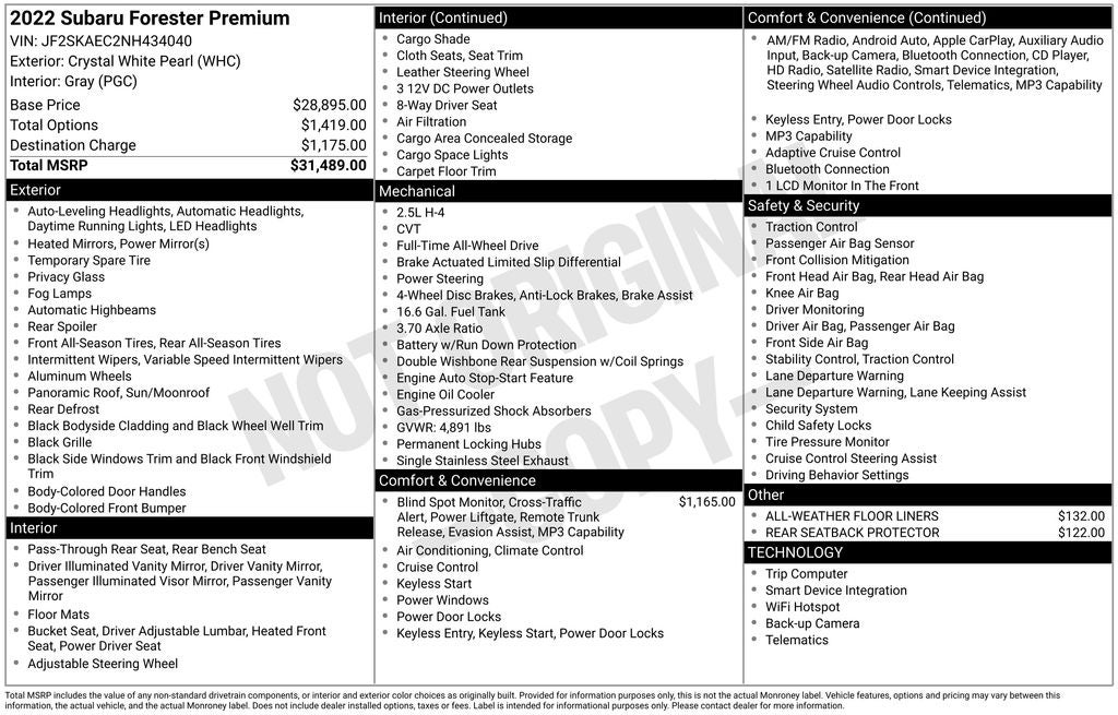 - Vehicle Name: Subaru Forester
