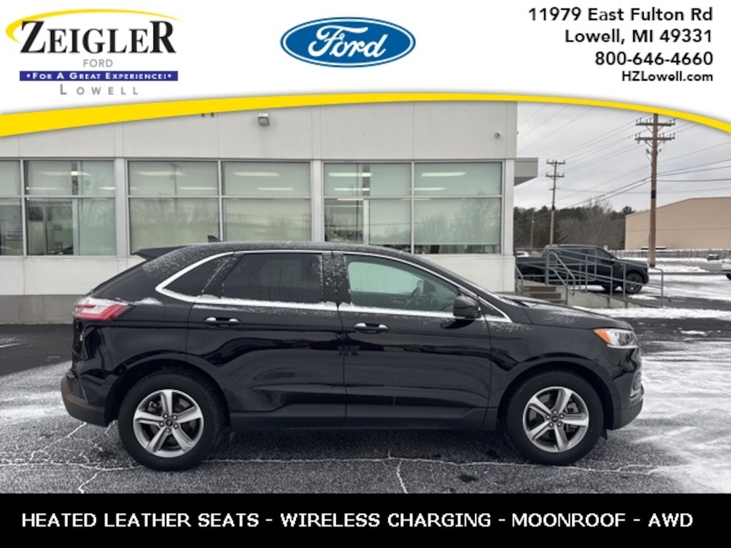 **LOCAL LEASE TURN IN**PANORAMIC VISTA ROOF**UPGRADED 18 INCH WHEELS**CONVENIENCE PACKAGE WITH POWER LIFTGATE AND WIRELESS CHARGING PAD**REMOTE START WITH FORD PASS CONNECT**HEATED LEATHER SEATS AND HEATED STEERING WHEEL**LED LIGHTS**DUAL POWER HEATED MIRRORS**BLUETOOTH**WON'T LAST LONG**Agate Black Metallic 2024 Ford Edge SEL AWD AWD 8-Speed Automatic EcoBoost 2.0L I4 GTDi DOHC Turbocharged VCT *MOONROOF, *ONE OWNER, *NON SMOKER, *REMOTE START & 2 KEYS, *PARKING SENSORS, *REARVIEW CAMERA, AWD, 110V/150W AC Power Outlet, Convenience Package, Equipment Group 201A, Fog Lamps w/Iconic Silver Bezel, Perimeter Alarm, Power Liftgate, Remote Start System, Universal Garage Door Opener (UGDO), Wireless Charging Pad.